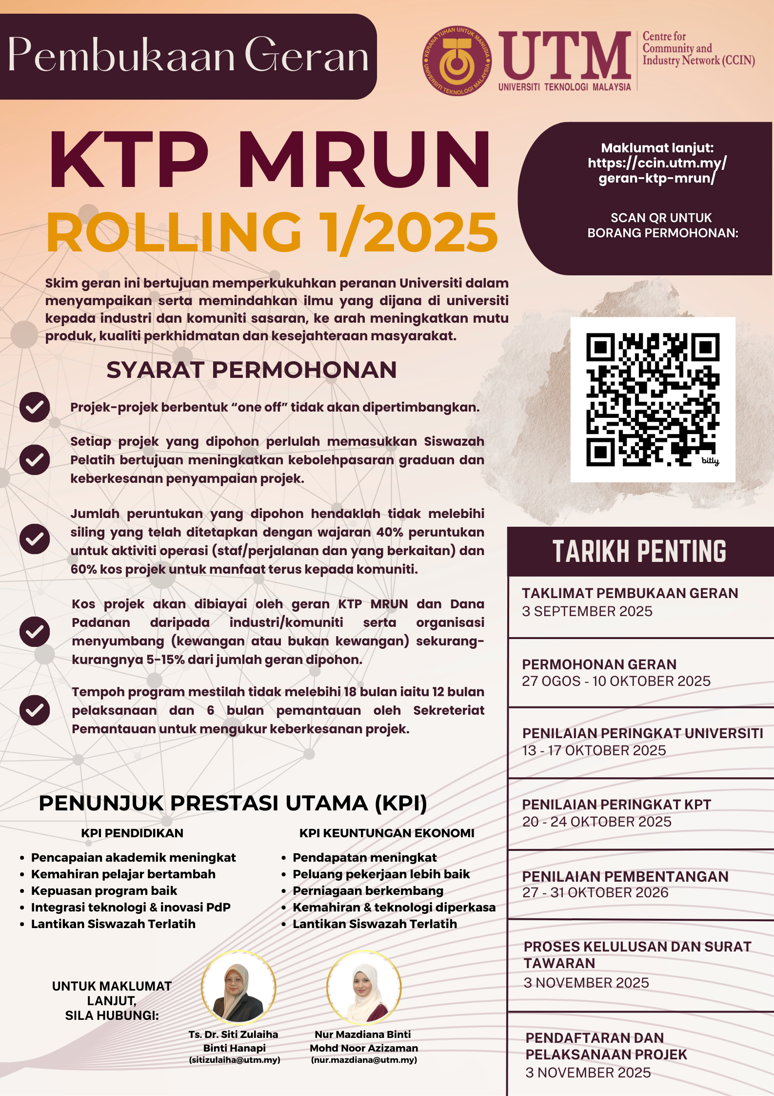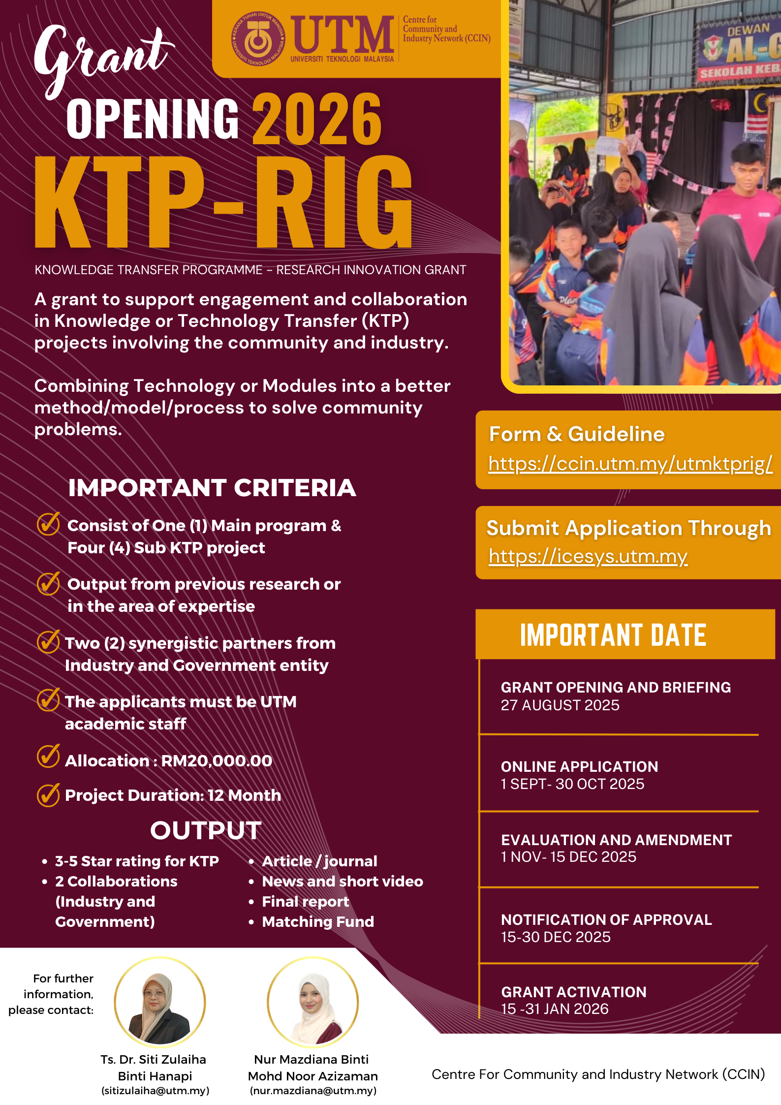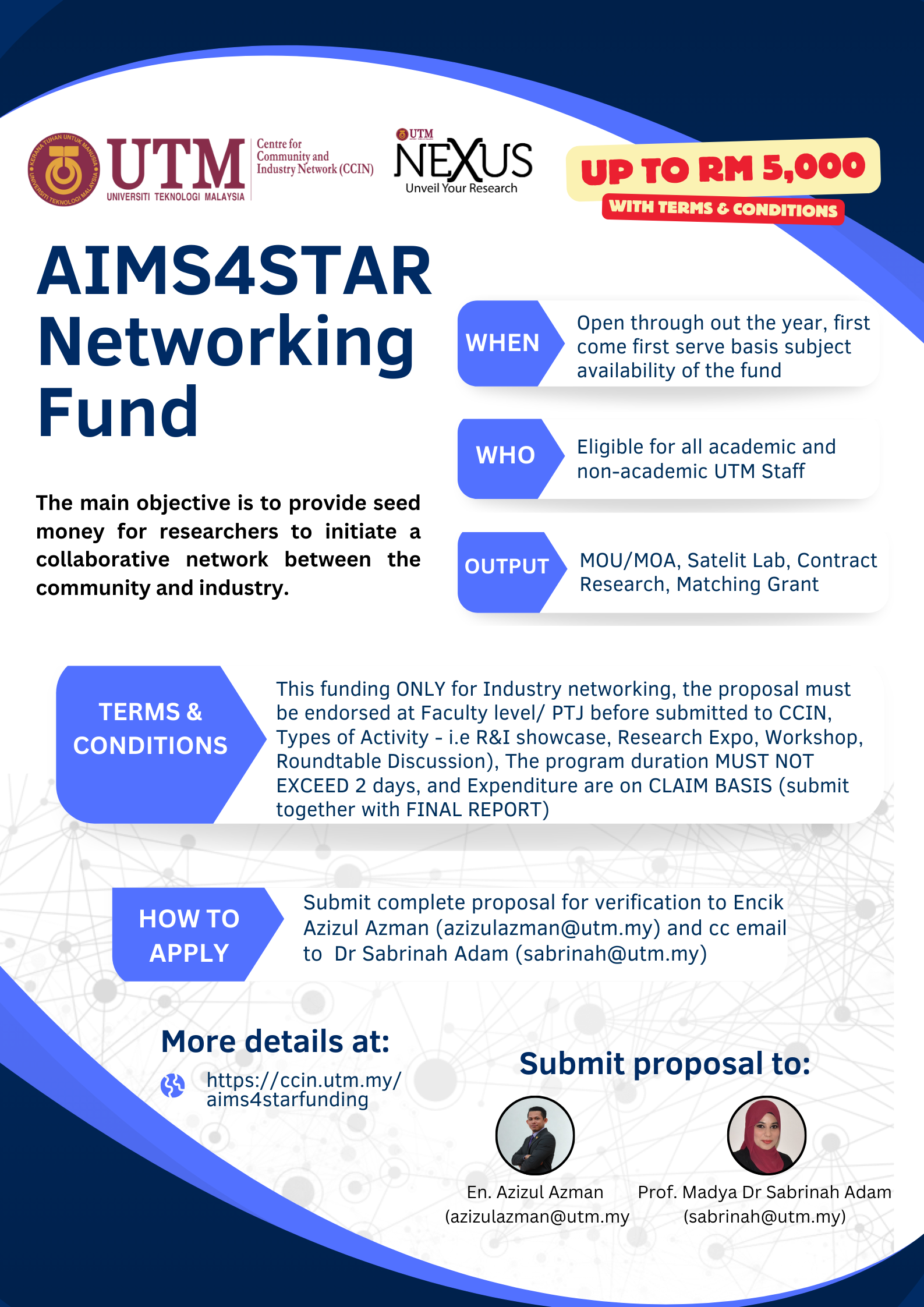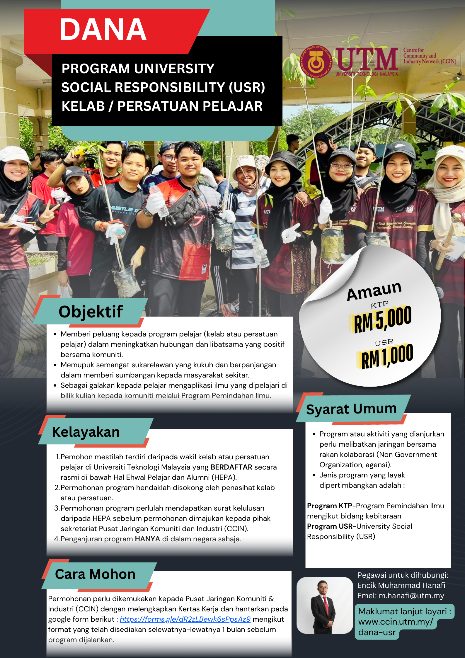 Dana yang ditawarkan oleh CCIN untuk memberi manfaat kepada komuniti dan menyokong aspirasi Universiti dalam memartabatkan program pemindahan ilmu dan khidmat masyarakat.